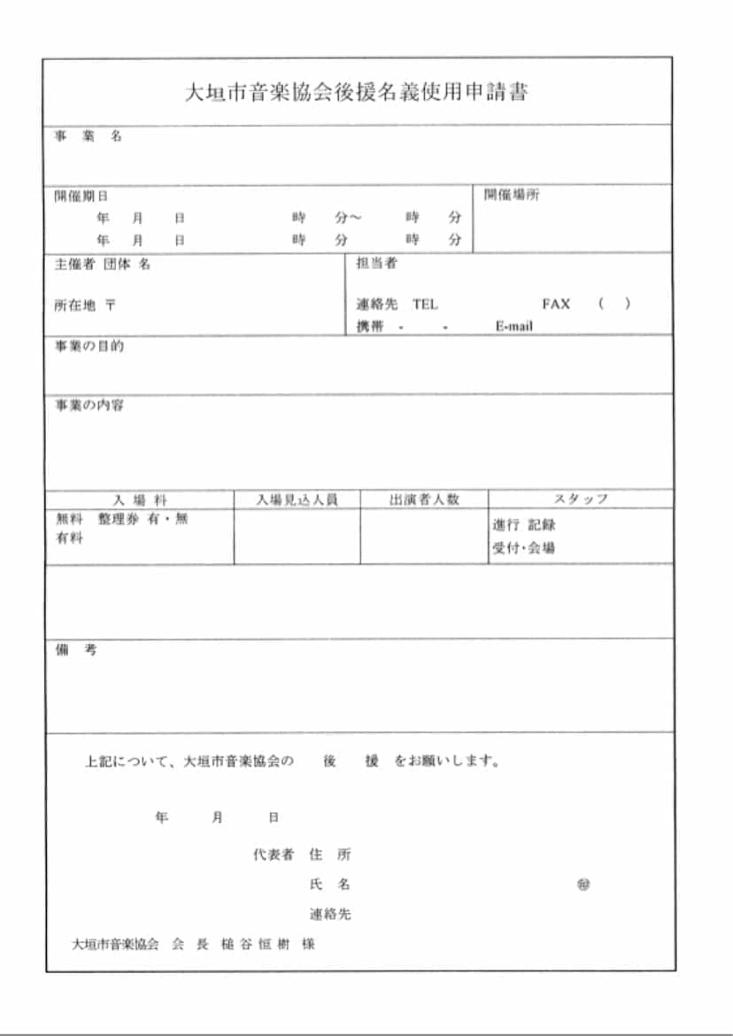 大垣市音楽協会後援名義使用申請書