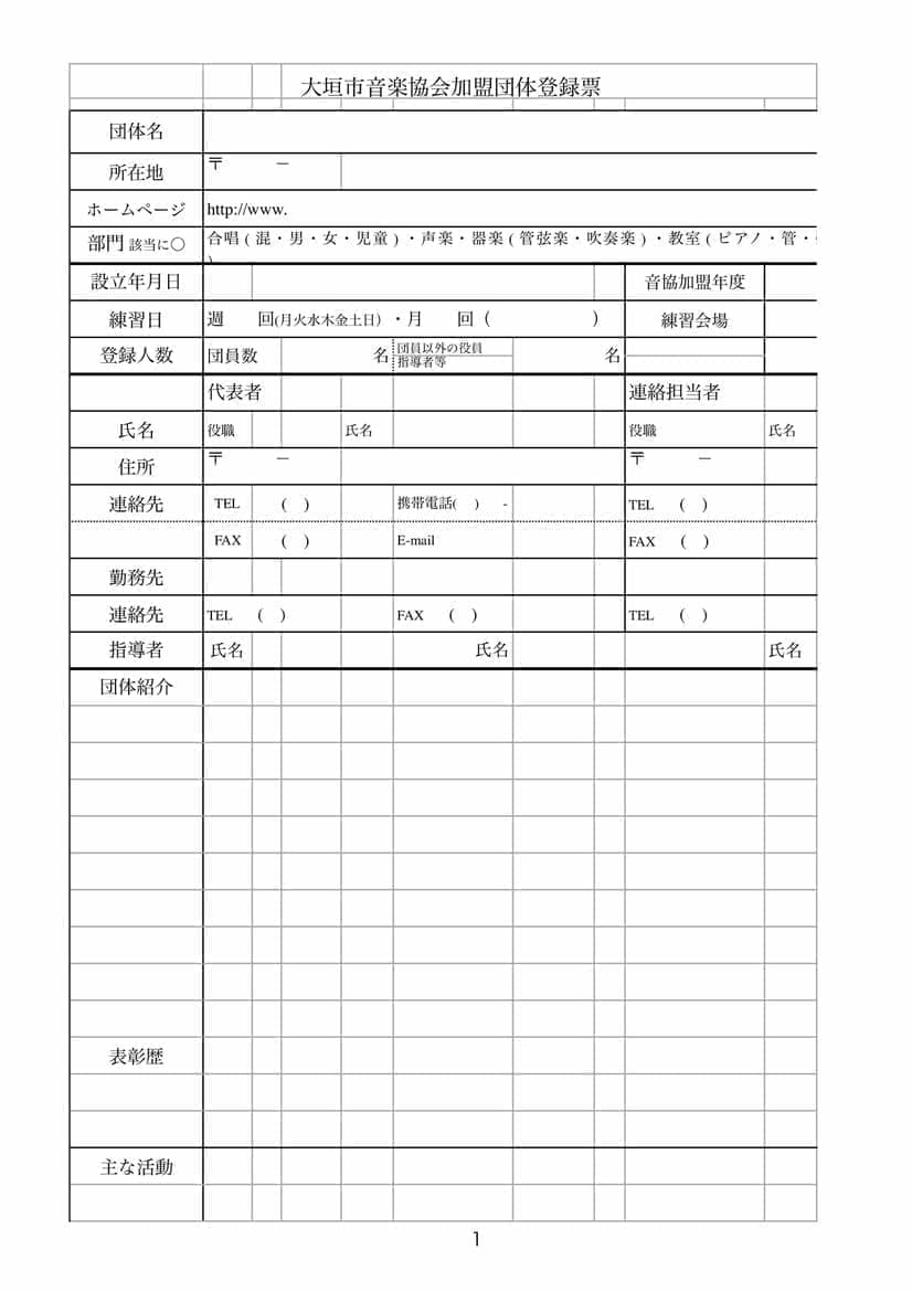 大垣市音楽協会加盟団体登録票